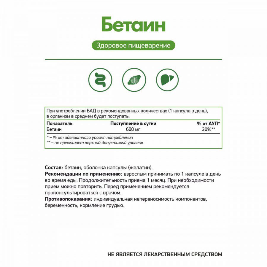 Состав 1 капсулы: Бетаин гидрохлорид – 600 мг