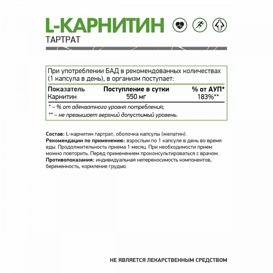 L-Карнитин Тартрат от NaturalSupp — это безопасная и эффективная добавка для поддержки энергетического обмена и улучшения физической формы.