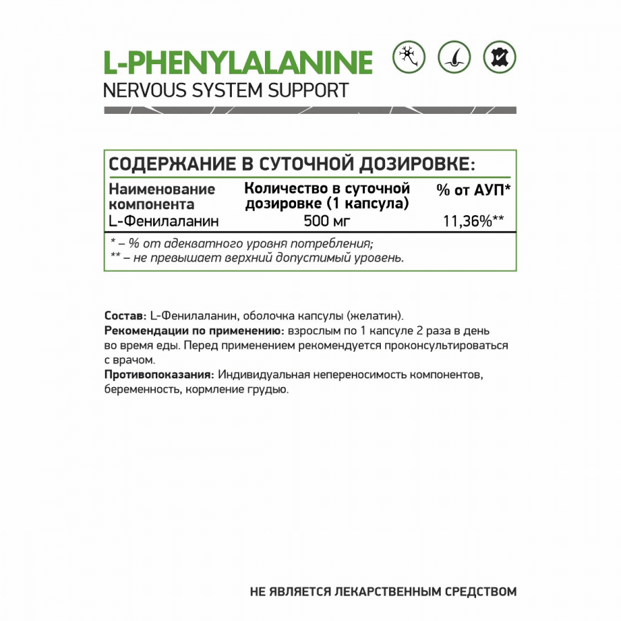 L-Фенилаланин NaturalSupp – это натуральная поддержка вашей нервной системы, когнитивных функций и общего состояния здоровья.