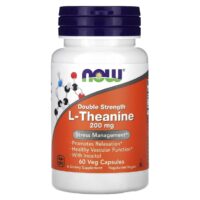 L-Теанин 200 мг от NOW Foods с добавлением инозитола 100 мг — мощная формула для снижения стресса, расслабления и поддержки когнитивных функций. Без ГМО, веганские капсулы.