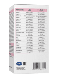 Карбонат кальция, наполнитель: микрокристаллическая целлюлоза, аскорбиновая кислота, оксид магния, D-кальция пантотенат, пиридоксина гидрохлорид, фумарат железа, рибофлавин, тиамина мононитрат, экстракт зеленого чая, D-альфа токоферола ацетат, ниацинамид,